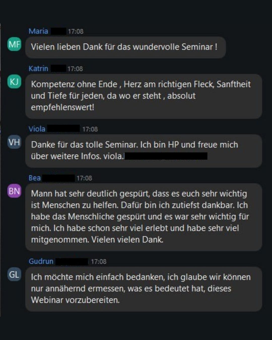 Es gibt von meiner Seite keine Austausch-Plattform. Als hochsensitiver Mensch ist Selbstfürsorge für mich essentiell. Dazu gehört bewusst limitierte Bildschirmzeit – ich bin z.B. auch nicht in Social Media aktiv.